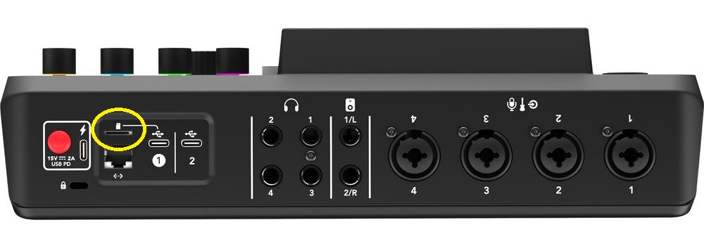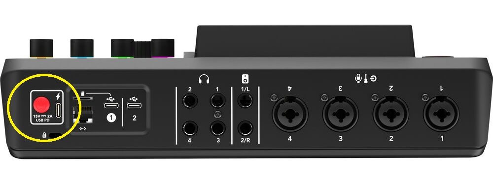 - Shut off the RodeCaster Pro by holding the power button for a few seconds.