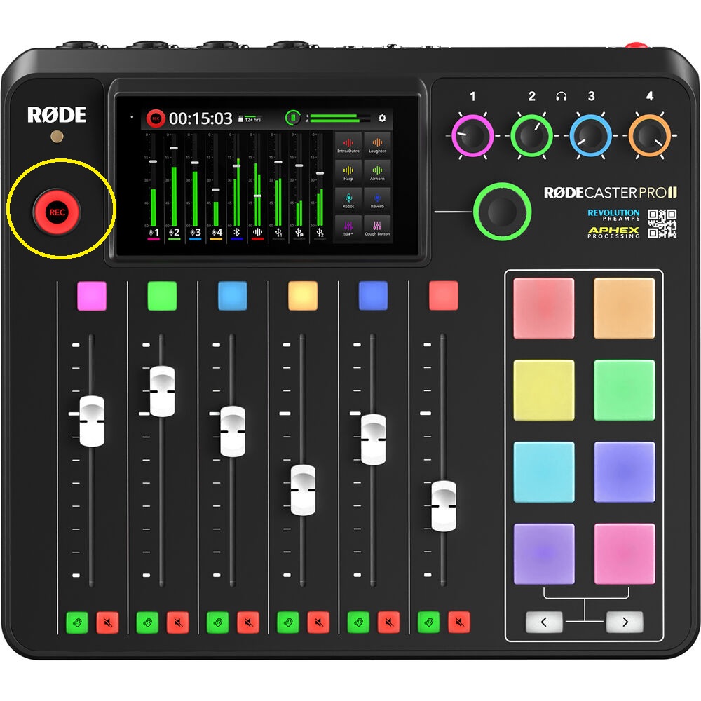 Built-in Bluetooth connectivity allows you to wirelessly connect compatible devices such as smartphones. This is useful for taking and recording high-quality phone calls directly into your podcast or recording session. You can also use Bluetooth to stream music or sound effects from your Bluetooth-enabled device directly to the RodeCaster Pro II.