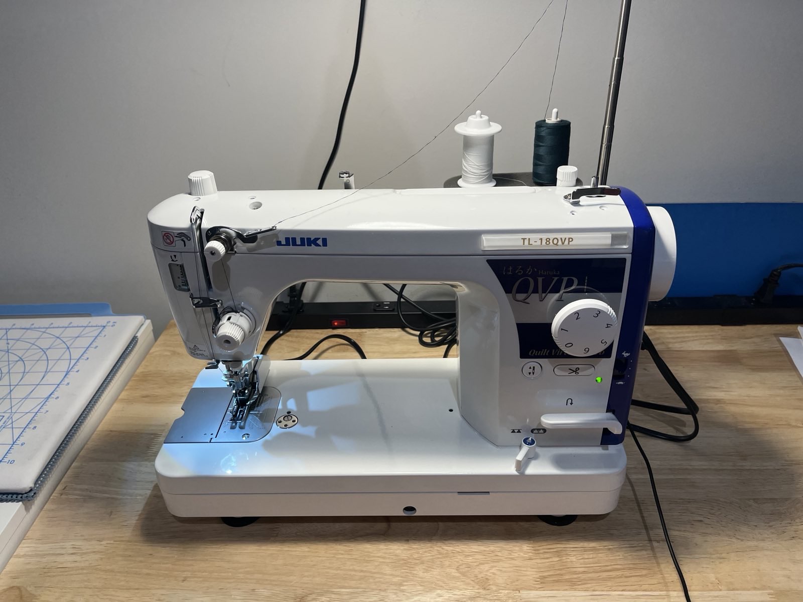 The Juki Haruka TL18QVP is a small industrial-strength straight stitch sewing machine. It is useful for thick materials including leather and quilts.